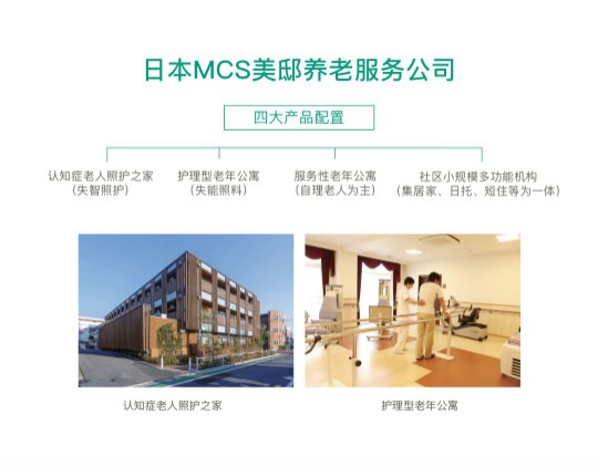 康养服务——与日本美邸(MCS)养老服务公司深度合作,快速提升运营能力。日本美邸(MCS)是国际领先的康养运营商,在全球拥有433家各类养老服务机构,床位12488张,其认知症护理床位运营数位居日本第一名。融创中国已经与美邸公司在养老照护理念、专业服务技术、精英专家团队和运营管理经验等方面达成深度合作,秉持“基于国际经验、结合中国国情、服务中国家庭”的宗旨,营造医疗康养一站式关爱体系。未来,融创将针对中国家庭的健康养老需求,围绕“康、养、食、娱、居”,全方位提供涵盖医疗健康、安心养老、营养膳食、文化娱乐、生活保障的200余项高标准生活服务,为中国长者量身定制高品质健康颐养新生活。