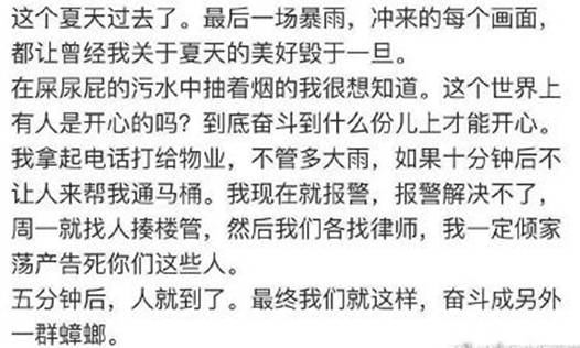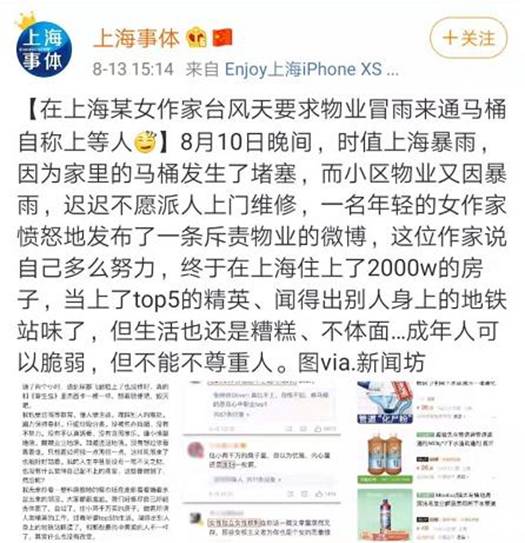 上海女作家要求物业冒雨修马桶的新闻