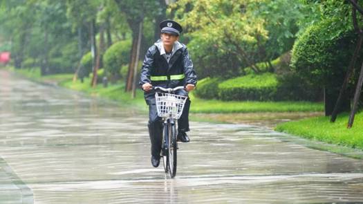 台风来袭的雨天,秩序部依然冒雨巡逻,查看各处设施有没有损坏,园区树木有没有折断的风险,以及有没有业主需要帮助,秩序小哥早已把每个角落烂熟于心。