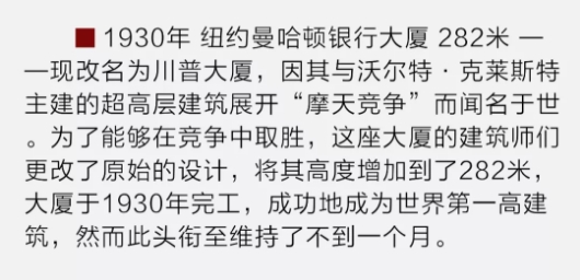在全球超高层的建筑史上,人类对高度的追求从未停止过。从381m纽约帝国大厦到828m迪拜哈法利塔等,一座座世界级、城市级的地标高楼不断涌现,聚拢社会顶层财富资本与高精尖人才。