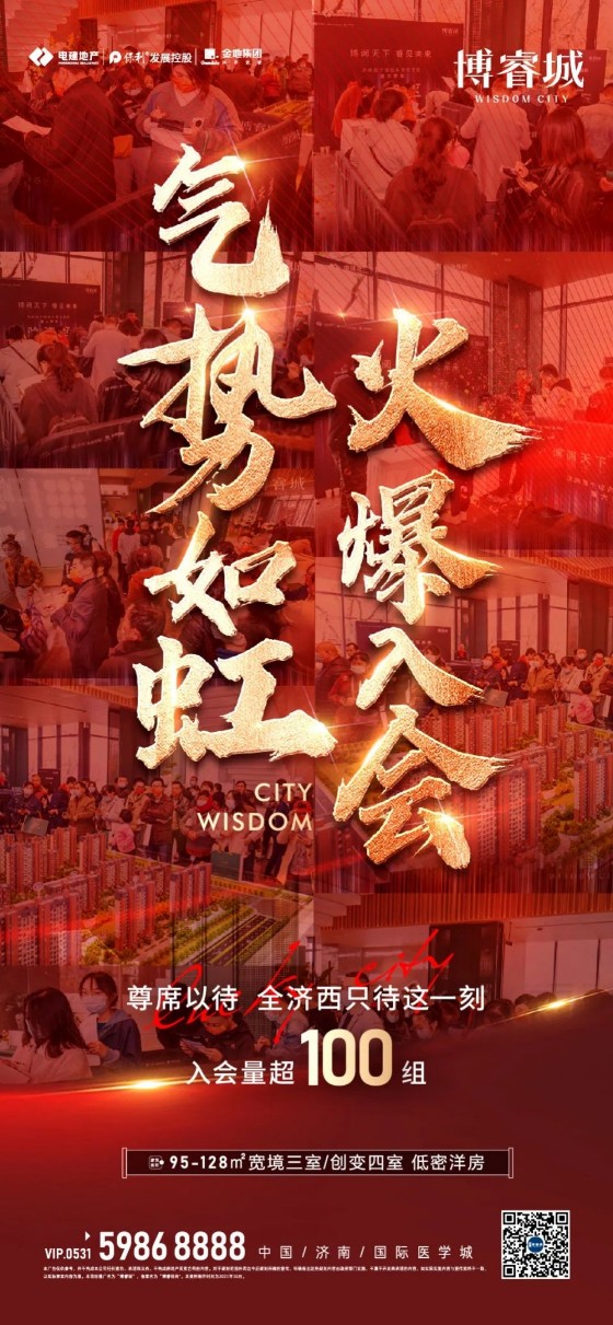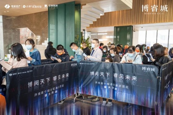 博睿城示范区完美绽放,来访客户在置业顾问的带领下,纷纷进入示范区内共鉴博睿城匠心造诣。沙盘前人头攒动、摩肩接踵,参观者无不惊叹于博睿城美轮美奂的视觉呈现,赞叹与好评连连不断。最终,有超100组客户完成现场入会!声势浩荡的火爆人气印证了博睿城的强劲号召力,也掀起了济西新一轮楼市热潮。