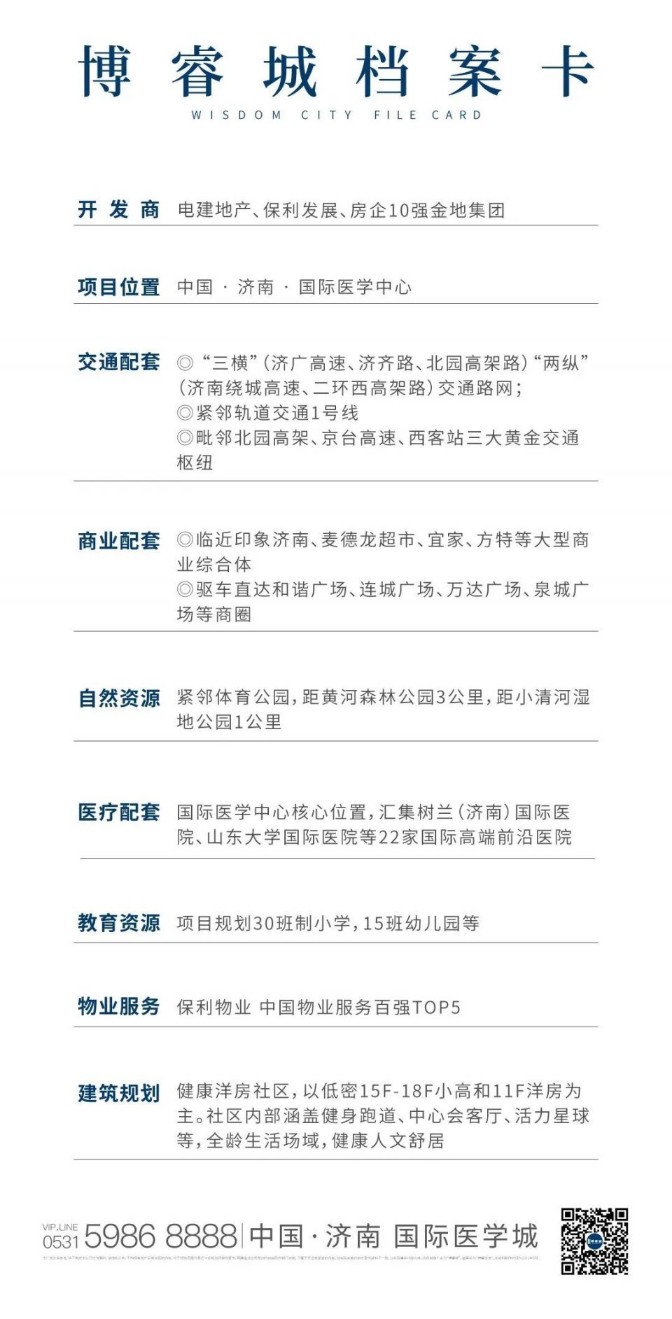 博睿城作为电建地产、保利发展、金地集团三大龙头房企联袂打造的健康洋房社区,坐拥“八横五纵”全维立体交通路网,紧邻轨道交通1号线,出行快人一步;临近印象济南、麦德龙超市等大型商业综合体,全龄商业配套,满足业主一站式生活所需;坐享体育公园、国家湿地公园、小清河滨河生态走廊环抱,尽享自然宜居的舒适环境;此外,项目南侧规划为30班制小学、15班制幼儿园等,优质教育环境,让孩子赢在起跑线!