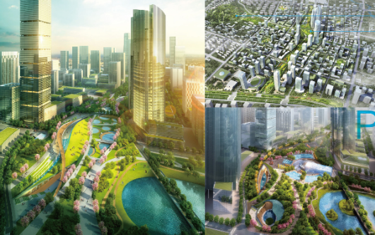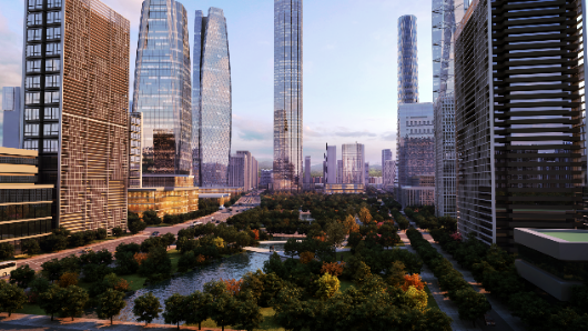 景观上,中央绸带公园,媲美美国纽约中央公园;