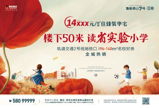 14XXX元/㎡起,住臻装华宅!鲁能泰山7号三期,楼下50米,读省实验小学!建面约96-140㎡名校好房,火爆热销中!咨询电话:580 99999