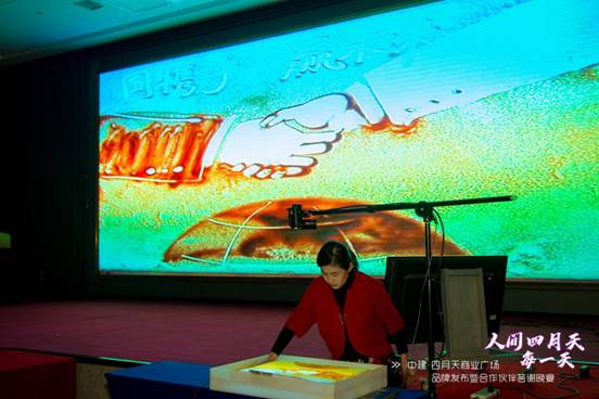 沙画艺人现场演绎《人间四月天》,以鲜明的线条和柔和的色彩,给嘉宾带来独特视觉冲击效果的同时,形象地描绘出四月天商业广场优越的投资价值。