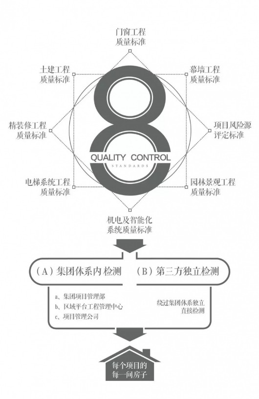如果说材料是建筑质量的源头关卡,那么施工标准则堪称建筑质量的决定关卡。在施工过程中,融创以领先行业标准的《质量内控体系》为标尺,以“八大类质量内控”为基准,共1500多个子项,确保每个建筑细节都至善至美。