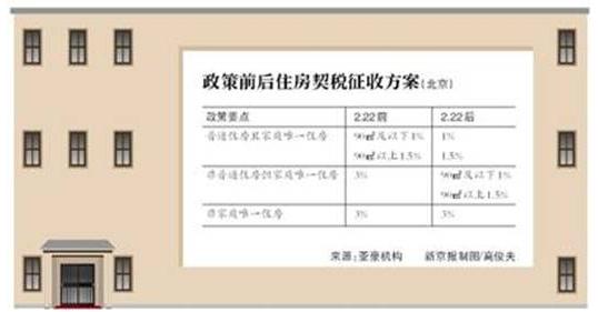 以二线城市一套90平方米,总价100万元的房源来说,2月22日以后购买,将少缴纳2万元契税。一套120平方米的二套房,总价200万元,在新政执行后将少缴纳2万元契税。