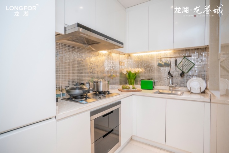 L型厨房,极致烹饪动线,美食只需一个转身,也可做成U型厨房,带来极致收纳空间,瞬间提升生活幸福感。