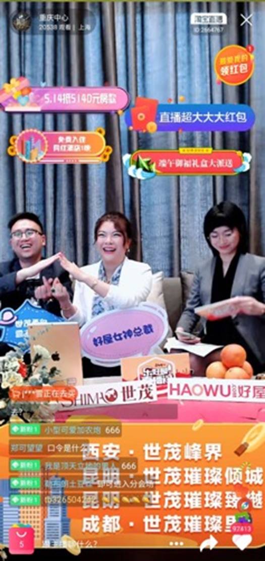 5月14日,由世茂西部地区公司与好屋联合发起的乐好屋万人直播推荐会在线火热直播,世茂集团西部地区助理总裁兼营销负责人乐钦化身“网红”,与好屋联合创始人、集团联席总裁陈兴联手“带货”。据统计,当天1小时直播吸引超过21622人次的精准购房人群在线观看,累计参与互动量突破100800,售出“5.14抵5140元购房优惠券”近5500份。结合2万人的观看人数,也就是说平均每4人观看就有1人下单,实现了较高的直播流量转化。
