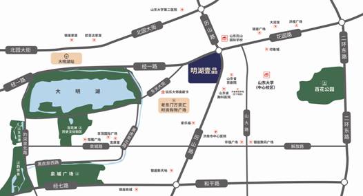 项目与大明湖公园相距仅一公里,临近大明湖站,紧邻地铁M1、M4号南北双向线路,地理位置优越,交通便捷。山东大学、印象城、梨园大剧院等周边基础配套完善,左揽明湖风光,右拥百年洪楼老商埠,尊重建筑的生活舒适本真,打造更符合济南气质、更具时代潮流感的当代人居作品,向人们演绎一种诗意栖居的高尚生活,必将成为该区域高端人群居住新领地。