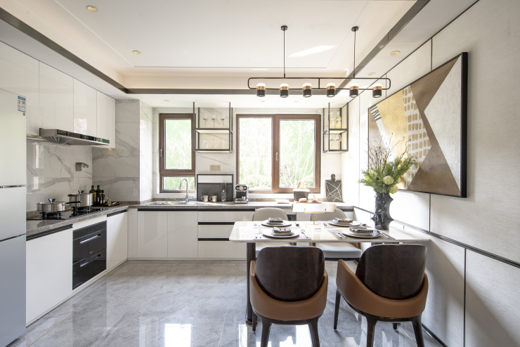 106㎡户型采用了餐厨相连的设计,餐厨空间达到13.4㎡,得益于U型厨房,动线合理,洗菜、配菜、烹调、上桌一条龙,让烹饪变成一场修行。