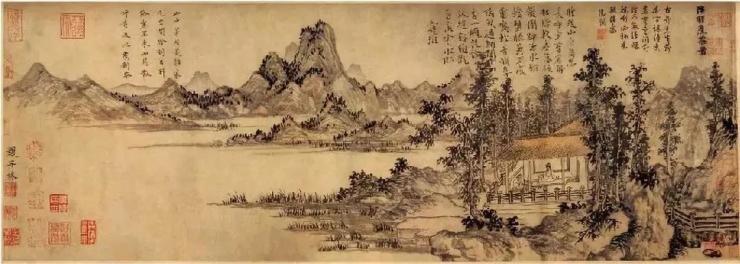 园区实景图图绘远山起伏,水面辽阔,临溪有一座茅屋,屋外丛树掩映。阁内一人坐于榻上,当为陆羽,一童子正拥炉烹茶。龙湖·天琅将元代画家赵原创作的纸本水墨画《陆羽烹茶图》复刻于此,意在虽处于高阁林立的闹市之中,也仍有一片闲适之地,品茶赏景,宁静于心。
