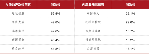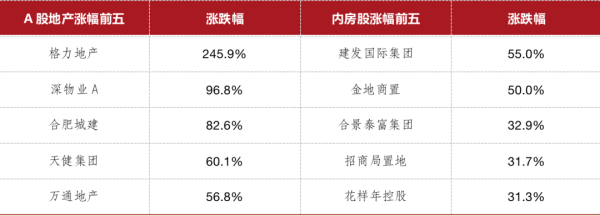 从个股表现来看,上半年A股涨幅最大的是格力地产,涨幅达到245.9%,深物业A、合肥城建也有不错的表现。
