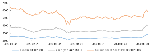 图:上半年上证指数、房地产(申万)指数、克而瑞内房股领先指数涨幅情况对比