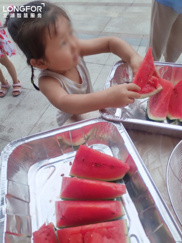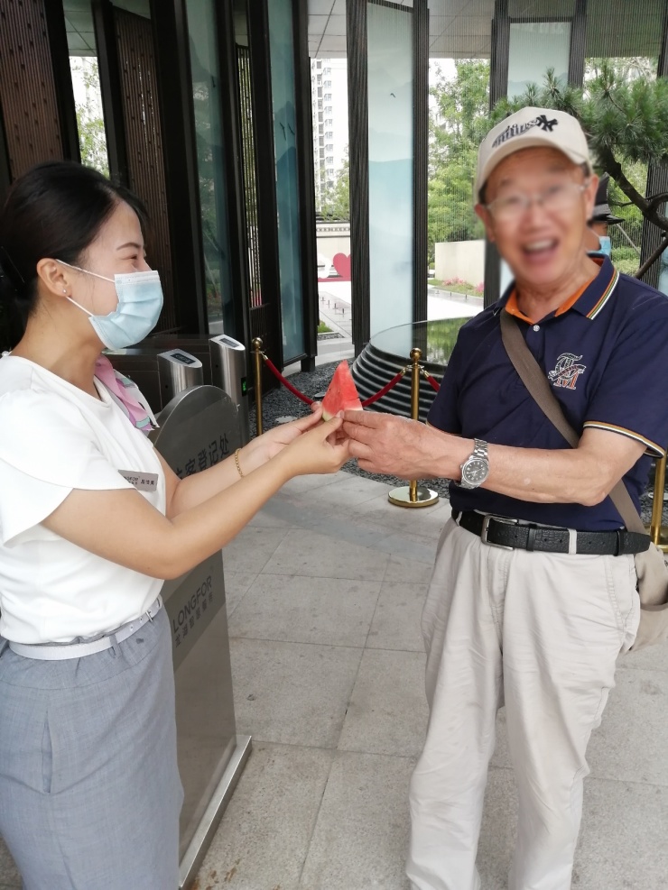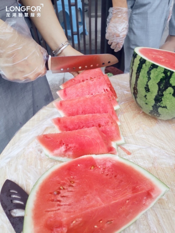 “门岗处免费吃西瓜喽!”7月14日,家住济南龙湖春江郦城的业主们迎来了甜蜜的一天,济南龙湖智慧服务的工作人员切好西瓜,送给进出小区的业主们。