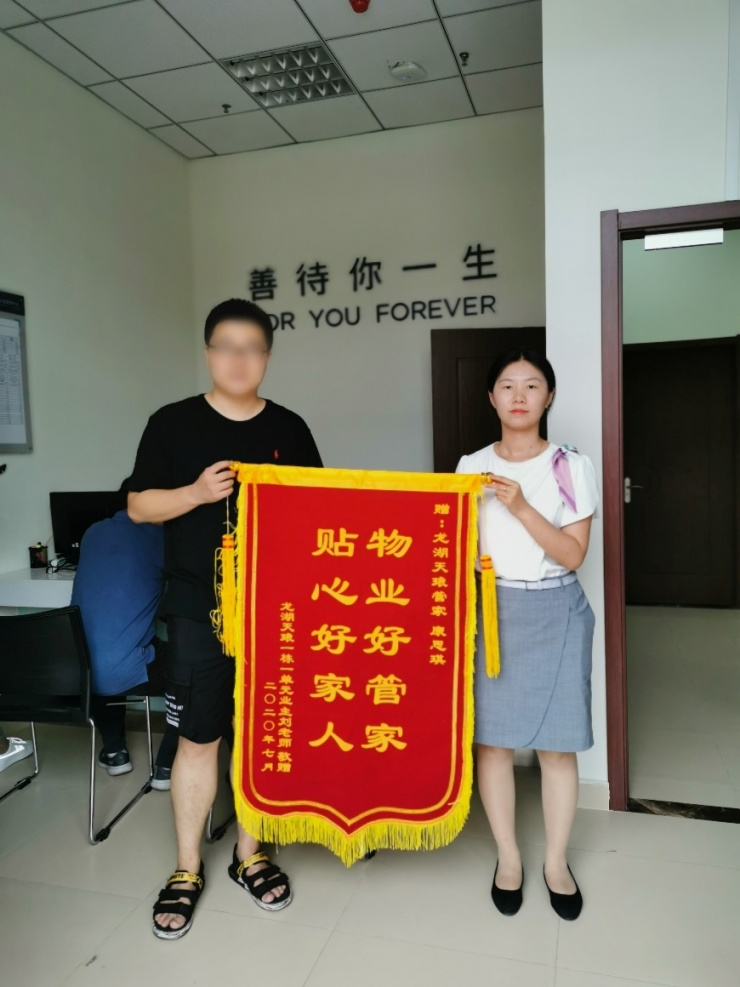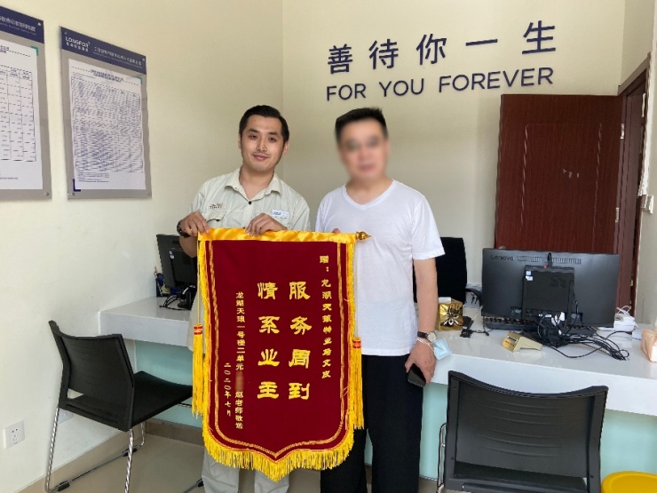 龙湖天琅项目返修工程师马文良,收到了来自业主赵叔叔的第一面锦旗。