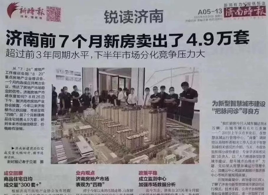今年以来,济南楼市回暖的趋势十分明显,据报道,8月25日,济南市房地产业协会召开2020年济南房地产市场研讨会。数据显示,济南市2020年1—7月新建商品住宅销售4.90万套,面积615.33万平方米,同比增长4.24%。