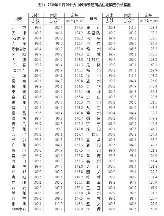 绳国庆指出,2020年11月份,各地认真贯彻落实党中央、国务院部署,紧紧围绕稳地价、稳房价、稳预期的调控目标,进一步落实房地产长效机制,推动房地产市场平稳健康发展,70个大中城市房地产市场价格涨幅总体平稳,略有回落。