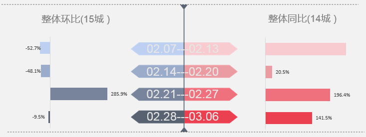 注:去年同期受疫情影响,监测城市成交量偏低,同比升幅较大,上图不予展示数值。
