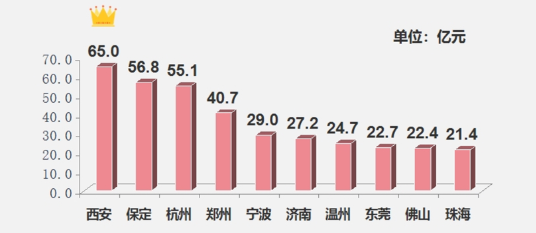 ▌出让金:榜单总额微涨,西安收金逾65亿元居首