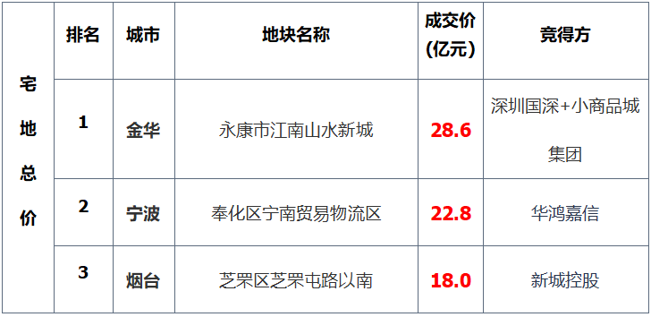 表:全国住宅用地成交总价三甲