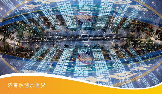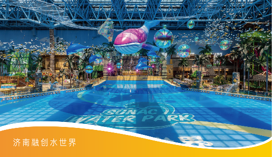 融创水世界建筑面积约3.8万㎡,是济南首个全天候、全客群、恒温室内外大型主题的亲水乐园。水世界以东南亚热带海岛风情为主题,整体分为海浪区、丛林区、无边泳池区三大区域,最多可同时容纳近万人。让城市中的人们无需远行,亦能感受东南亚的海岛风情。