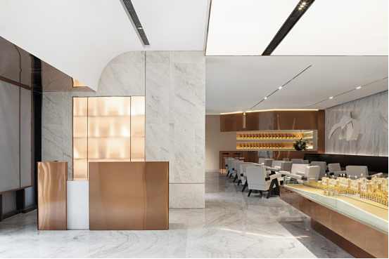 纸艺雕塑、光影镜面、丝绸格栅,充满秩序与质感,构造出具有东方古韵和现代艺术相结合的会客空间,而万科物业为客户提供的预接待礼仪服务,更是诠释着独具尊雅的墅居体验。