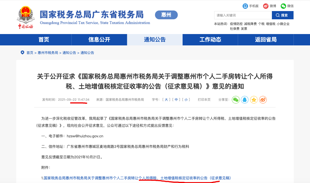 国家税务总局惠州市税务局关于调整惠州市个人二手房转让个人所得税、土地增值税核定征收率的公告(征求意见稿)