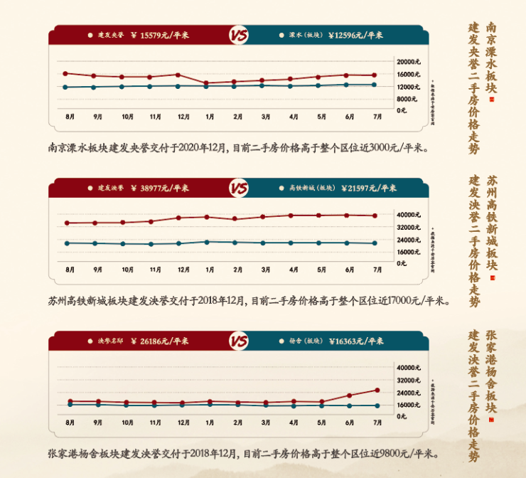 南京溧水板块建发央誉交付于2020年12月,截止7月二手房价格高于整个区位近3000元/平米。
