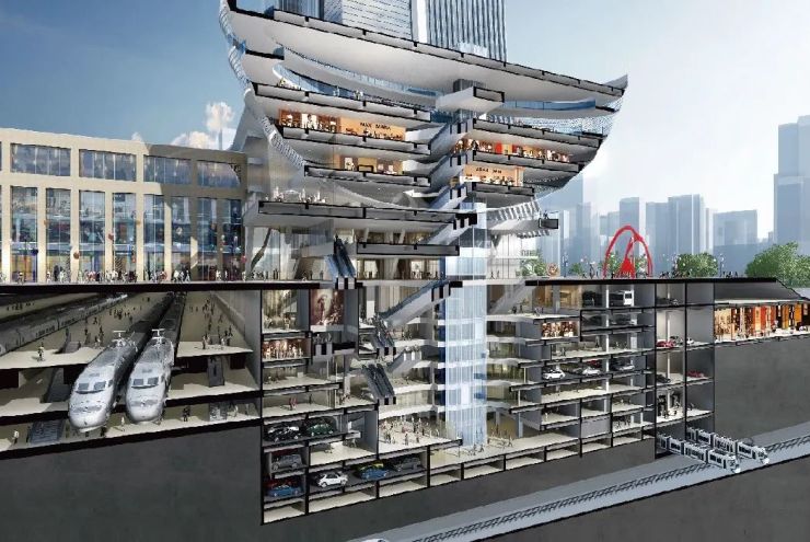 王府庄TOD占地面积约30万㎡,总建筑面积约100万㎡,R1、R2双线地铁交汇,是集居住、商业、教育配套设施及城市公园绿地等多元业态为一体的综合社区开发项目。