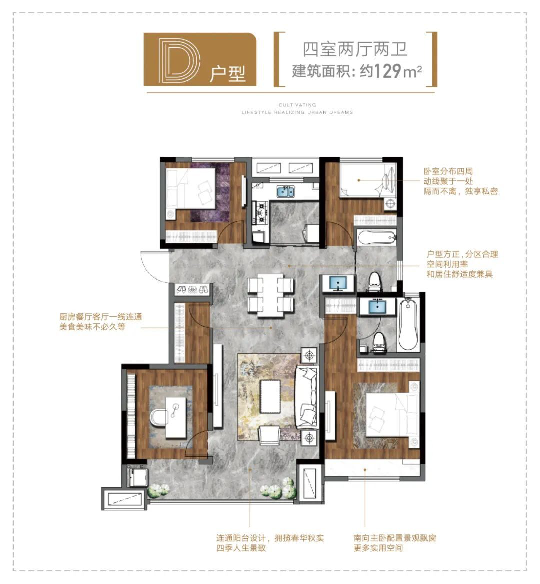 自入市以来,项目1.2期建面约104-118㎡全能三房,以及建面约129-139㎡爆款四房,便一直被市场看好,供不应求。特别是10号楼的建面约129㎡四叶草户型,双联阳台连通餐客厅与卧室,四个卧室分布四角,基本没有过道浪费,性价比非常合适,轻松满足四口之家、三孩时代、三代同堂需求。