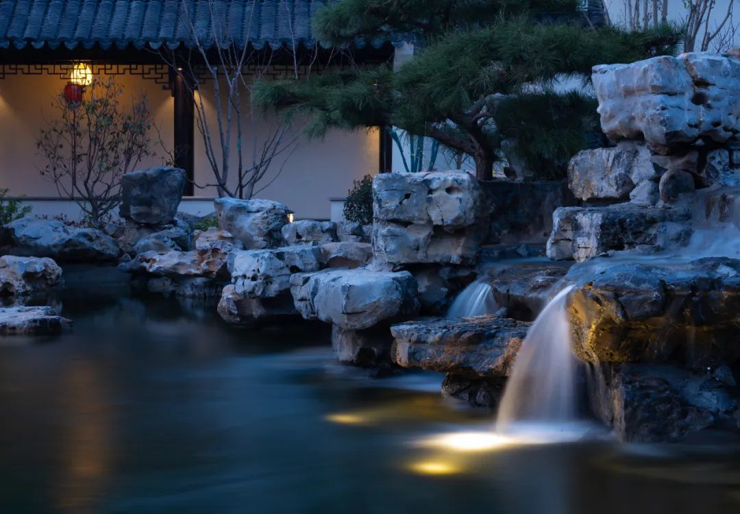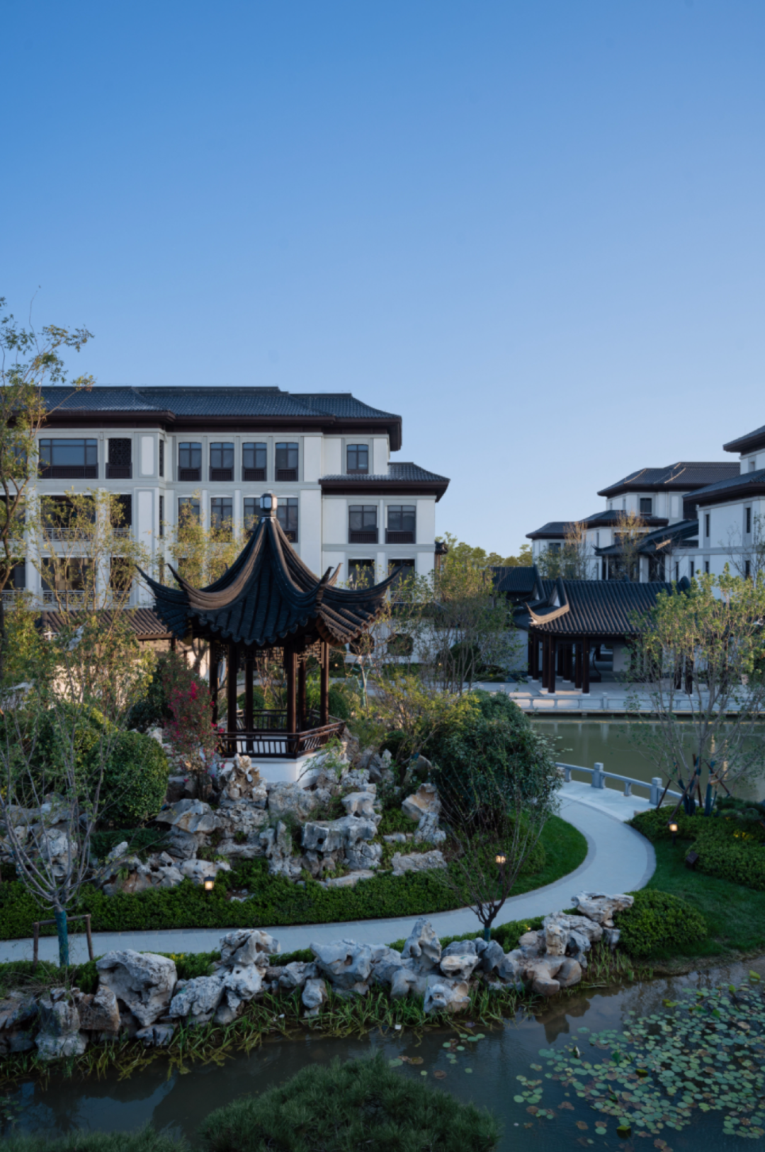 国风洋房园林营造有着更大的野心,按照GOA大象设计院的说法:打造一个微缩版的“大明湖”,一步一景,尽是“明湖十景”的诗意风光。