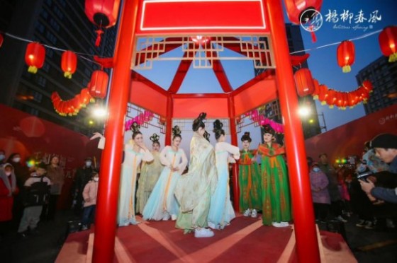清风拂面,月色动人,这一年元宵又是令人向往的团圆日!杨柳春风以千灯望福为主题,通过形式多样的创意花灯、福鼓等传统装饰,搭配民国风布置主题,营造一派仿若穿越时间的团圆之旅,在灯笼的映照下,在红火的氛围下,熙熙攘攘的热闹景象将元宵节的喜气不断推向高潮。